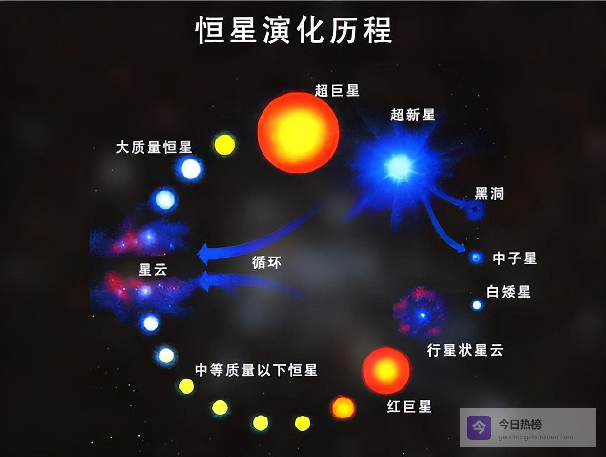 换一种通俗的说法,中子星就相当于恒星死亡后的“残骸”。当天体的生命周期走向终点时,必然会经历物质和能量的损耗与消耗。比如我们太阳系的太阳,在演化到末期时,会因为持续不断的核聚变反应,不断消耗自身的氢元素和氦元素,等到这两种核心元素彻底耗尽,核聚变反应便会停止,太阳也会随之走向消亡。