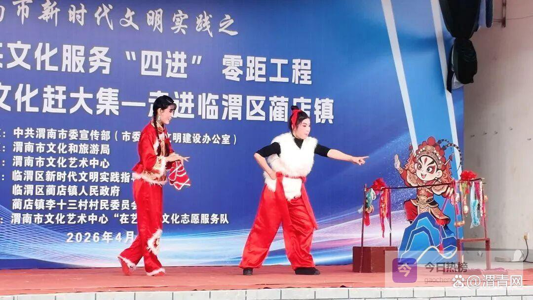 4月10日,渭南市新时代文明实践之公共文化服务“四进”零距工程——“乡村直通车 文化赶大集”走进临渭区蔺店镇李十三村,恰逢“李十三戏曲艺术季”暨乡村农家美食展同步开展,一场精彩的“文艺+乡村旅游”体验火热上演,戏曲雅韵、民俗歌舞、特色美食与田园花海相融,为当地村民及游客带来了一场沉浸式的春日文化盛宴。