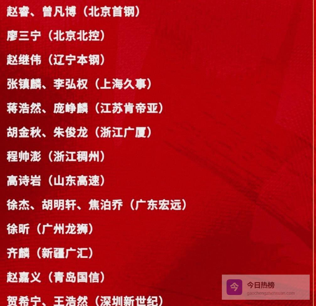 辽宁有张镇麟、赵继伟,江苏的庞峥麟,上海的李弘权,深圳的贺希宁和王浩然,广厦的胡金秋和朱俊龙,北京的曾凡博和赵睿,名单既看重近况,也兼顾阵容结构