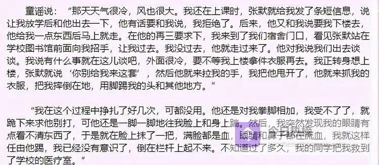 童瑶跪地求饶,仍被踢到满脸是血,一度失去意识。