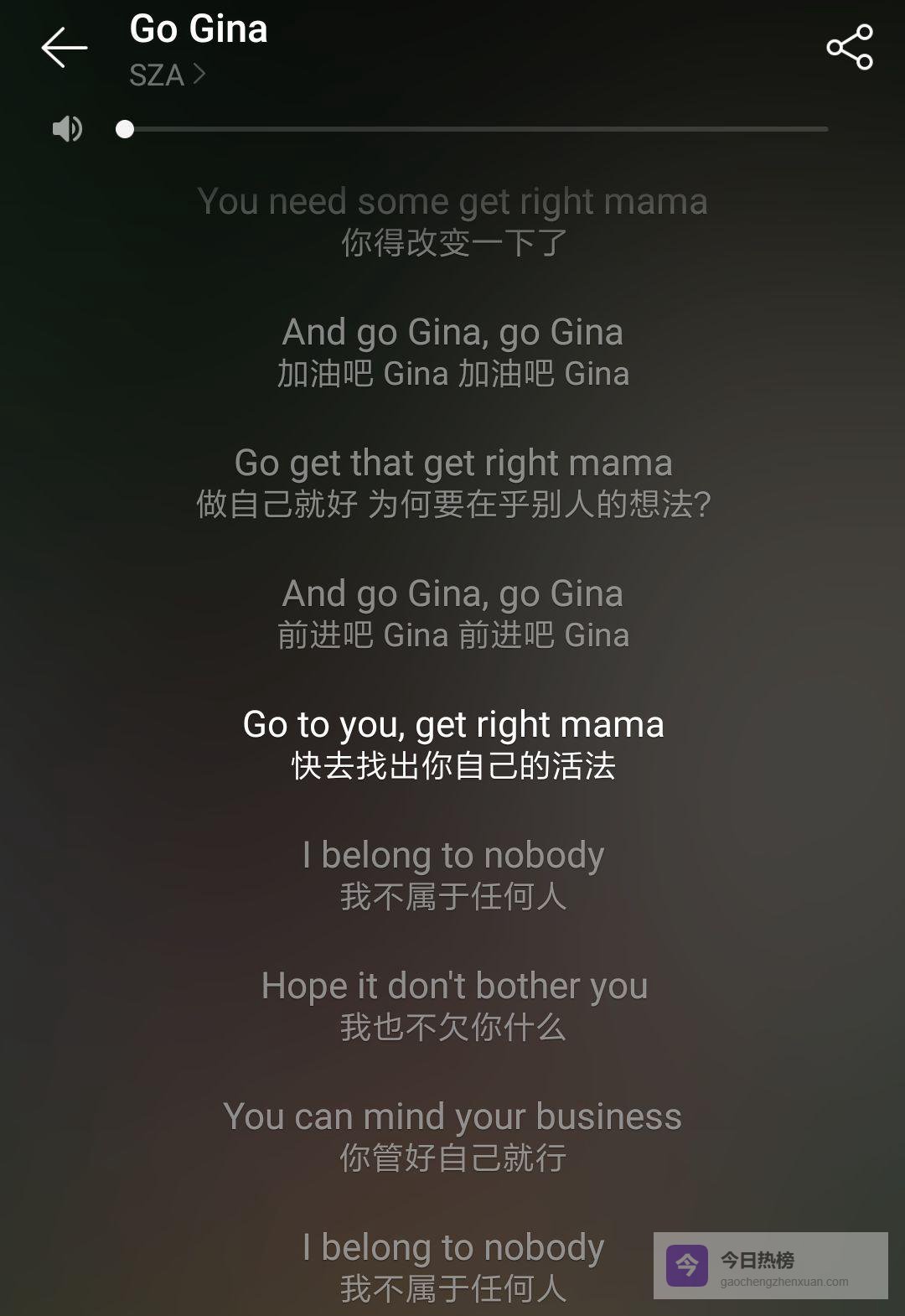Gina是情景喜剧里那个永远逼自己“光彩照人”的角色。SZA借她喊话: “我们不属于任何人,只想活成自己喜欢的模样。”