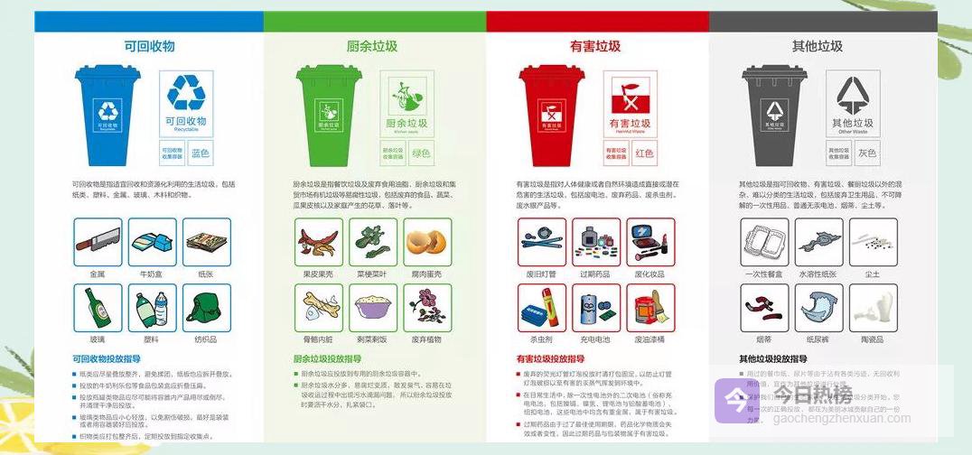 根据本地部署,9月30日前,136个街道办事处的试点小区必须完成垃圾分类;10月31日前,分类范围将向全市拓展。目前哈尔滨执行四分法:可回收物、厨余垃圾、有害垃圾、其他垃圾,对应不同颜色桶。