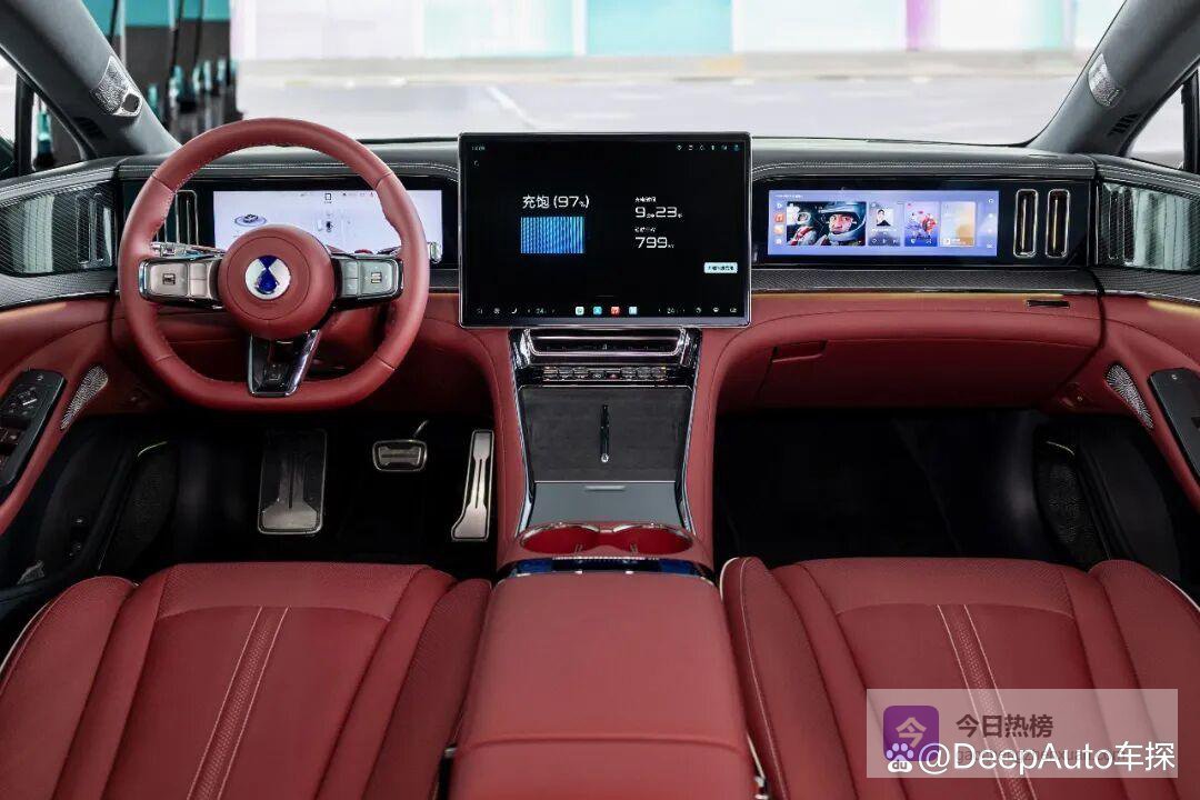 在座舱上,腾势Z9GT座舱搭载4nm旗舰芯片与DiLink系统,全球首搭10屏互联矩阵,50英寸AR-HUD、17.3英寸2.5K中控屏、13.2英寸副驾娱乐屏联动,全场景AI语音支持四音区识别、连续对话等功能。同时,腾势Z9GT还配备零重力座椅、四座按摩功能、前后双冷暖冰箱等舒享配置。