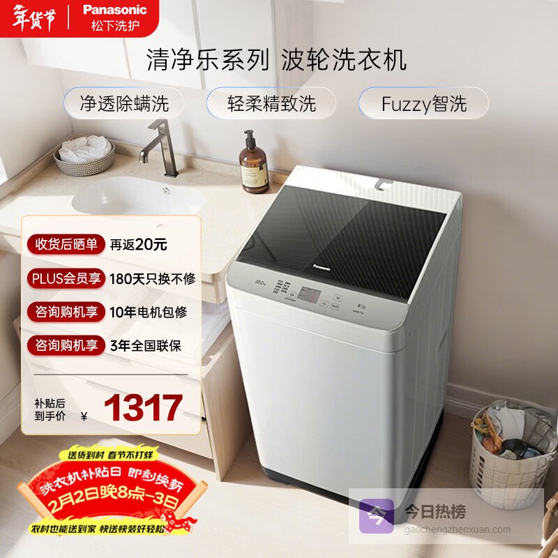 推荐入手:松下波轮洗衣机10公斤XQB100-TSWTS