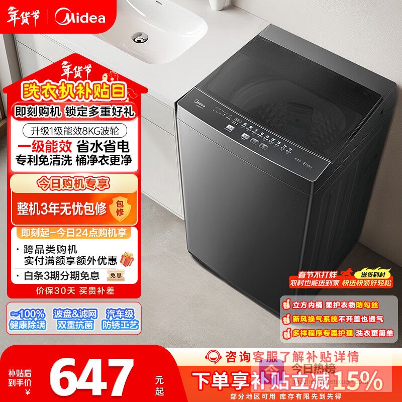洗衣从未如此简单!选择美的波轮洗衣机,让你的生活更轻松。