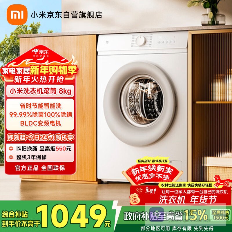 【京东自营】米家小米滚筒洗衣机全自动8公斤羊毛洗超薄机身智能洗一级能效租房国家补贴XQG80MJ11¥