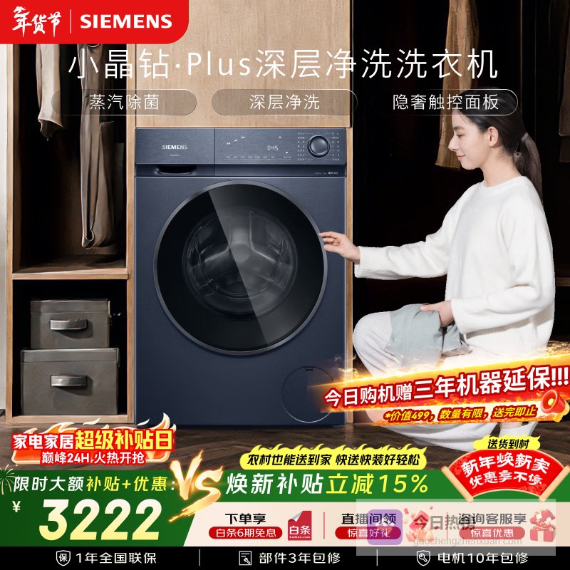 推荐入手:西门子小晶钻plus 10kg滚筒洗衣机