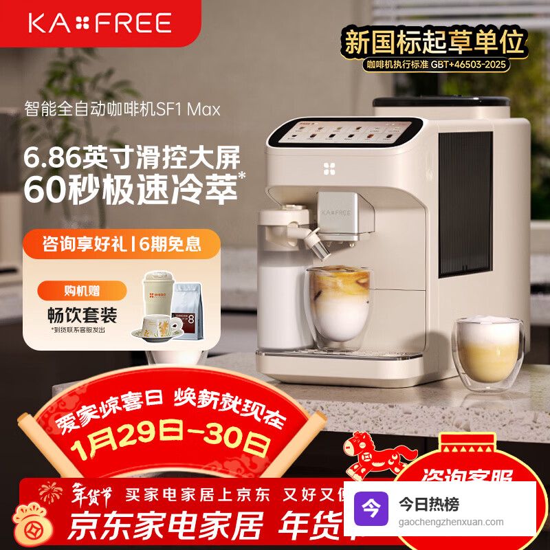 咖啡自由(KAxFREE)【新年礼物】咖啡机 家用全自动咖啡机现磨冷萃意式 大屏触控 双温双萃 SF1 Max 月白¥