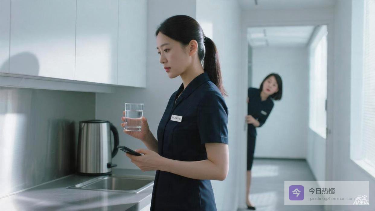 我端着水杯站在茶水间里,外面的太阳很大,阳光照在地板上亮得刺眼。我把水杯放下,拿起来,又放下。
