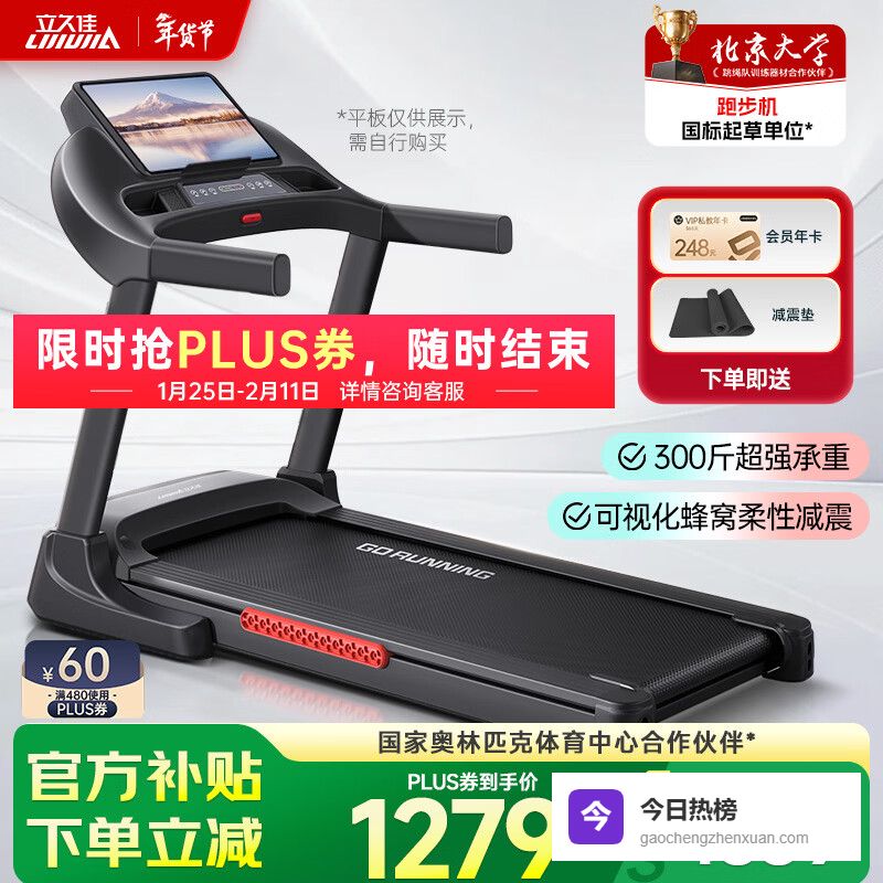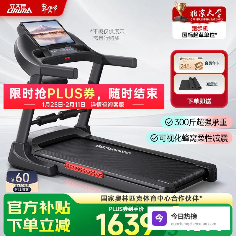 【品牌直营】立久佳跑步机家庭用智能降噪可折叠免安装走步机宽大跑台-暴汗猛犸67CM跑台/蜂窝减震/可¥