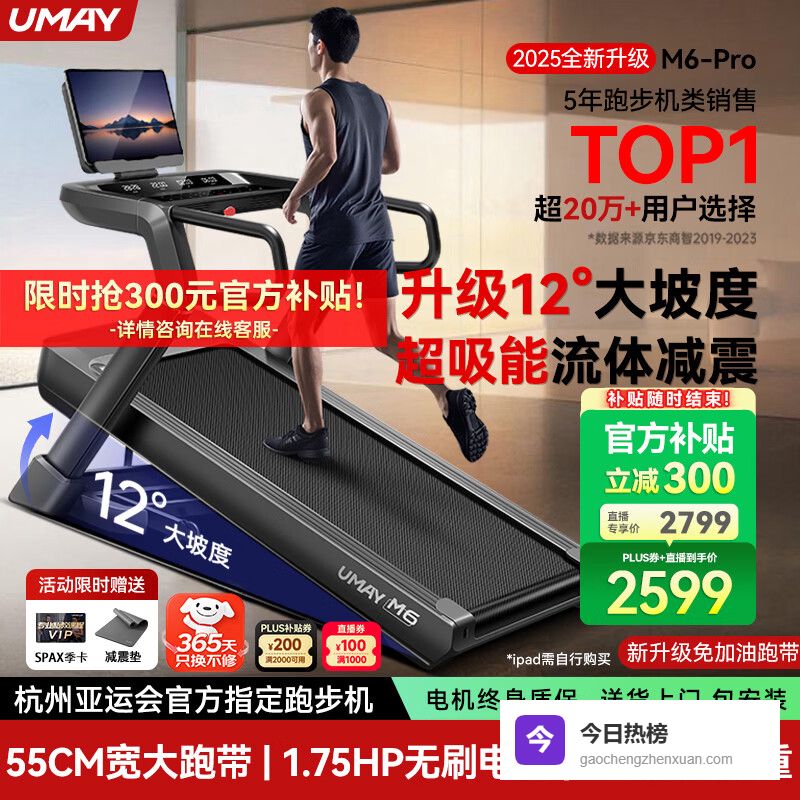 【京东自营】佑美M6Pro跑步机家庭用登山爬坡机折叠安静低音走步机高端健身房器材¥
