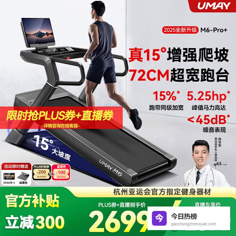 【品牌直营】佑美M6Pro+跑步机家庭用登山爬坡机折叠安静低音走步机高端健身房器材M6Pro+/15¥