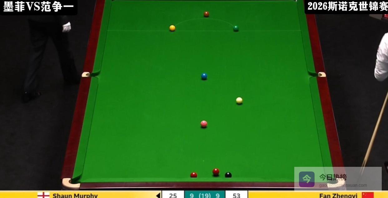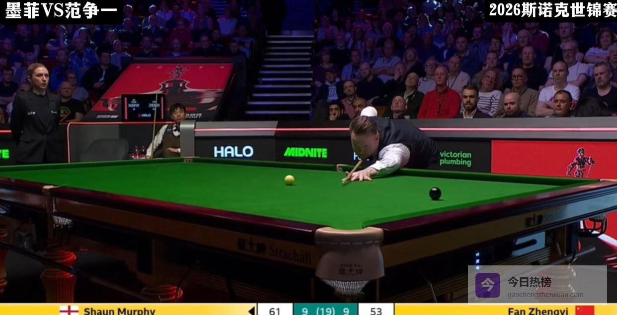进入第二阶段,比赛的激烈程度有增无减。 第10局,范争一用一杆62分将总比分扳成5-5平。 随后双方进入了令人窒息的拉锯战,比分交替上升,谁也难以将优势保持超过两局。 第12局充满了戏剧性,双方战至争黑球,范争一在重压之下,以一杆漂亮的翻袋打进黑球,惊险拿下此局,将比分追至6-6平。 这种敢打敢拼的作风,正是他整场比赛的缩影。 第15局,范争一本有机会取得领先,却在击打一颗关键黑球时出现失误,墨菲抓住机会以8-7再次超出。