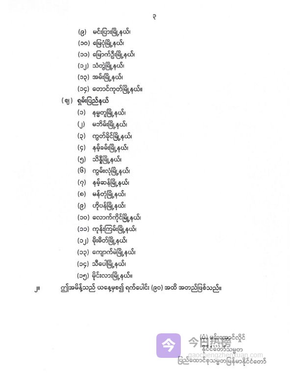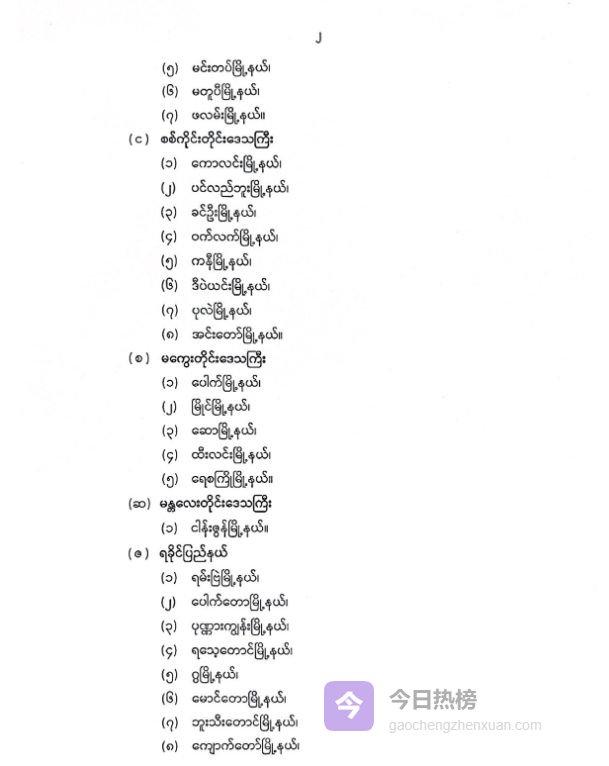 另外还包括若开邦的兰里镇、包多镇、邦纳均镇、拉代当镇、古亚镇、孟都镇、布迪当镇、皎道镇、敏比亚镇、弥蓬镇、谬杭镇、丹兑镇、安镇、洞鸽镇;掸邦的南渡镇、马本镇、贵概镇、南坎镇、登尼镇、滚弄镇、南散镇、曼东镇、霍班镇、老街镇、拱掌镇、孟密镇、皎梅镇、昔卜镇、勐拉镇。
