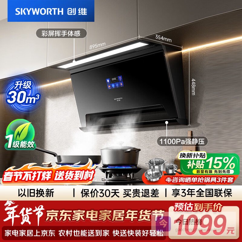 【1000Pa大风压】配备1000Pa的强大风压,能有效克服烟道阻力,无论是在高楼层还是烟道比较难排的环境下,都能保证油烟顺畅排出,防止油烟倒灌,不堵不漏。让你做饭时只专注美味,不担心油烟问题。