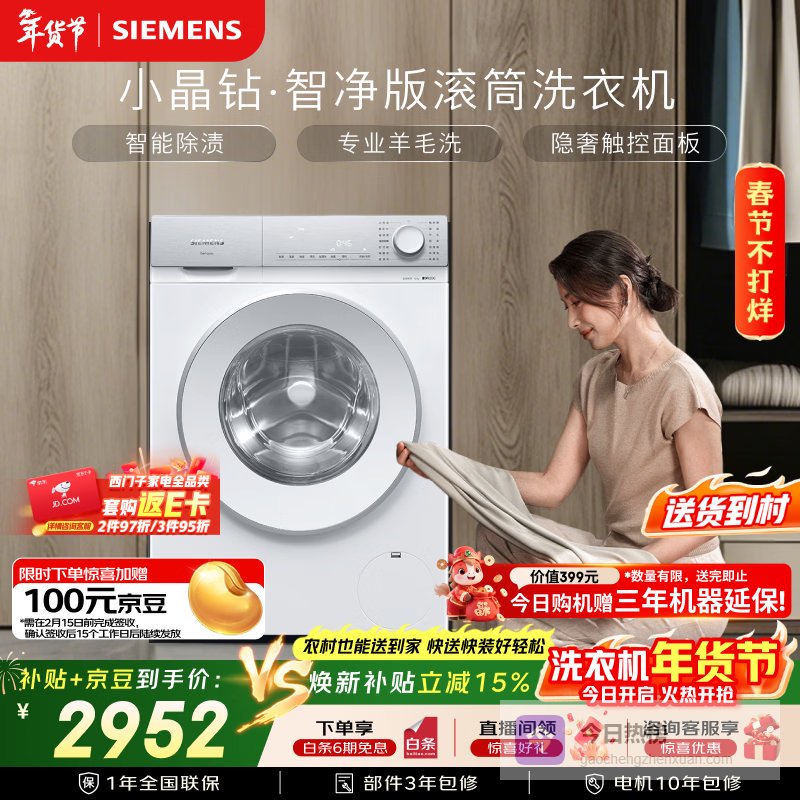 推荐入手:西门子小晶钻10公斤滚筒洗衣机