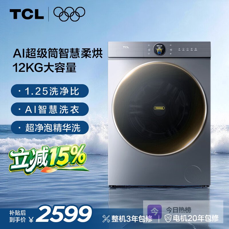 推荐入手:TCL小黄人T7R MAX 12公斤洗烘一体机