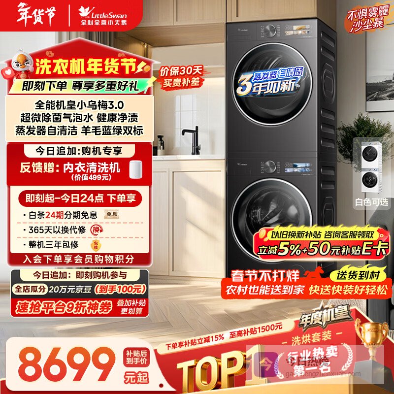 推荐入手:小天鹅洗烘套装 10KG滚筒洗衣机+热泵烘干机【小乌梅3.0】