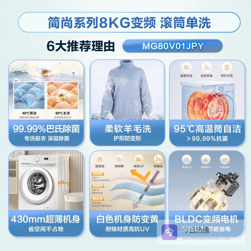 推荐入手:美的超薄8公斤滚筒洗衣机MG80V01JPY