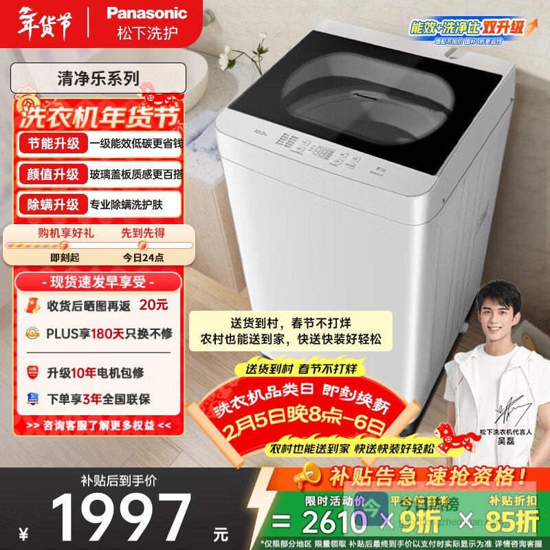 松下波轮洗衣机结合了一级能效的电源设计,在节能减排的同时,减少家庭的电费支出。对于追求经济实惠又需要高性能的家庭,它是非常明智的选择,同时还能享受国家对于以旧换新的补贴政策,为您的选择增添更多价值。