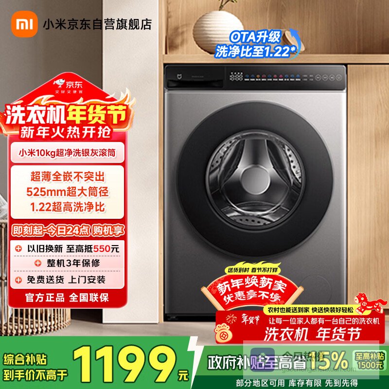 【京东自营】米家小米滚筒洗衣机全自动10公斤超净洗羊毛洗家用超薄大筒径一级能效国家补贴XQG100M¥