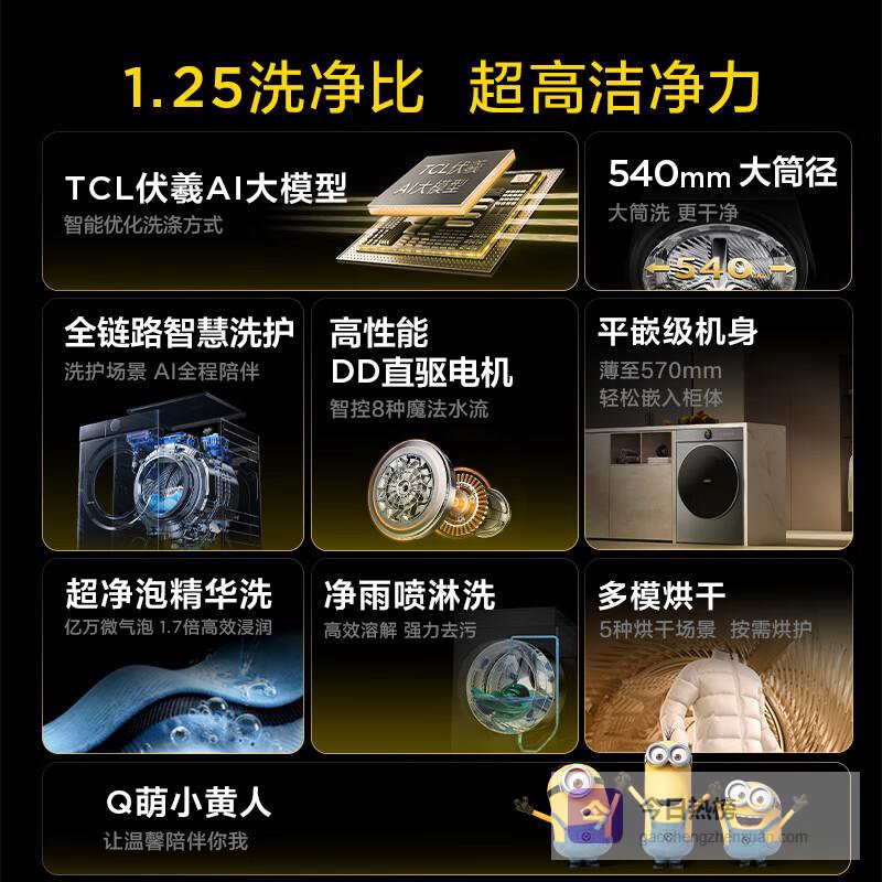 【京东自营】TCL大眼萌AI超级筒T7RMAX小黄人滚筒洗衣机全自动洗烘一体12KG家电国家补贴以旧¥