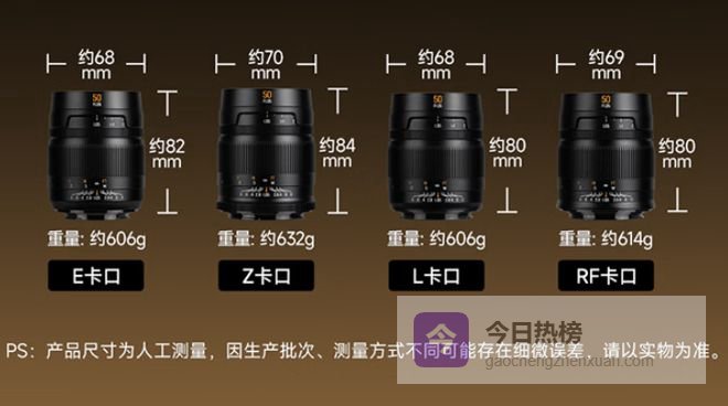 其具有4个卡口,重量都在600克以上,尼康Z口最重,达到了632克。