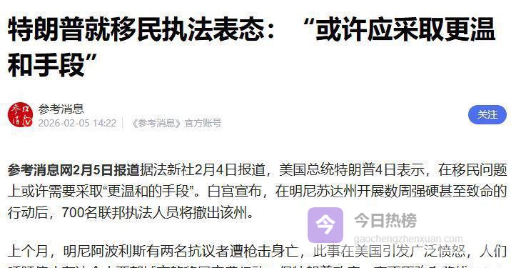 果不其然,在特朗普发表声明之后,明尼苏达州撤走了一部分联邦执法人员,但大家不要被这个情况所迷惑,这些撤离的人员只占总数的四分之一,其余的2000名仍将留在当地,继续执行备受争议的移民执法任务。