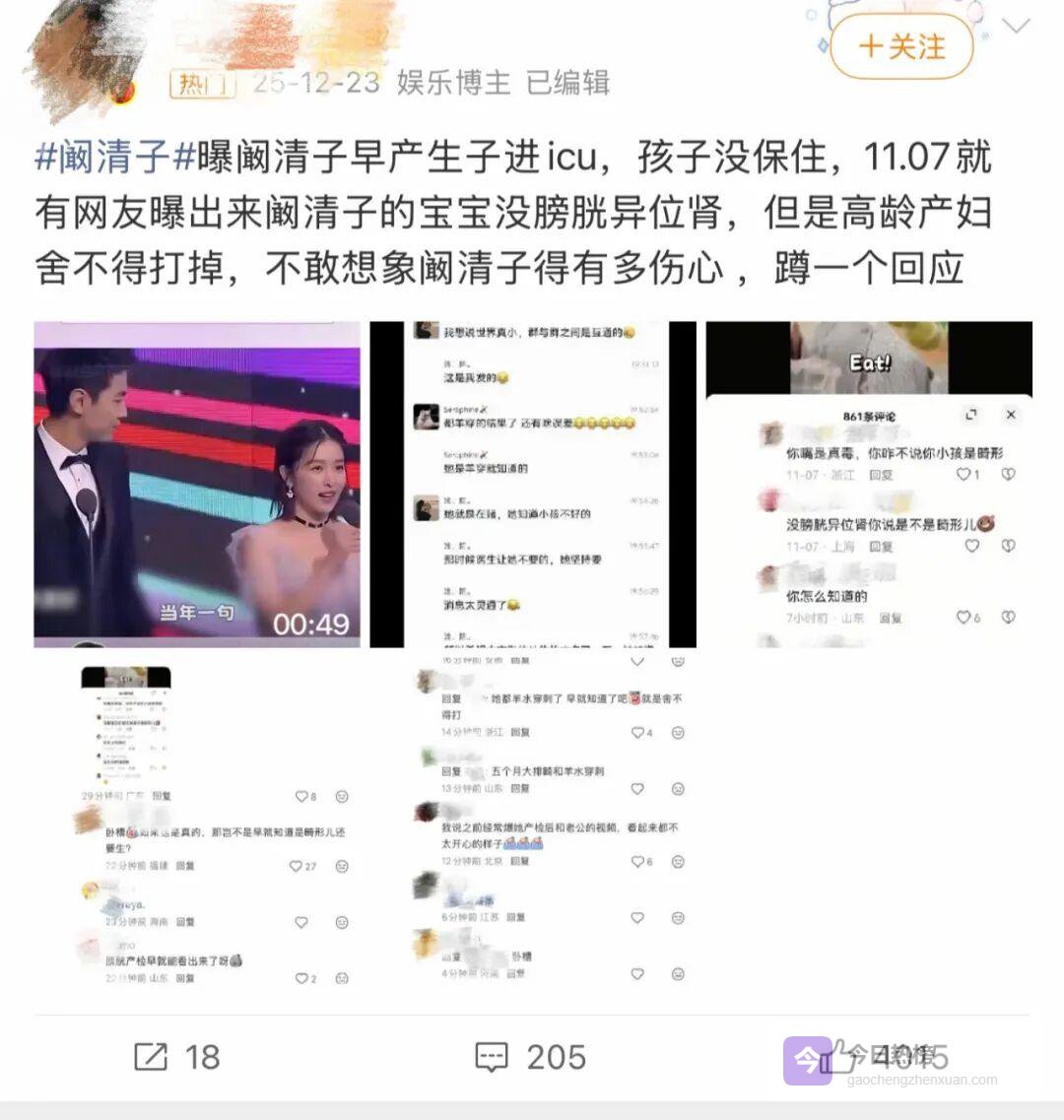 今年12月,「阚清子孩子」的话题登上热搜。