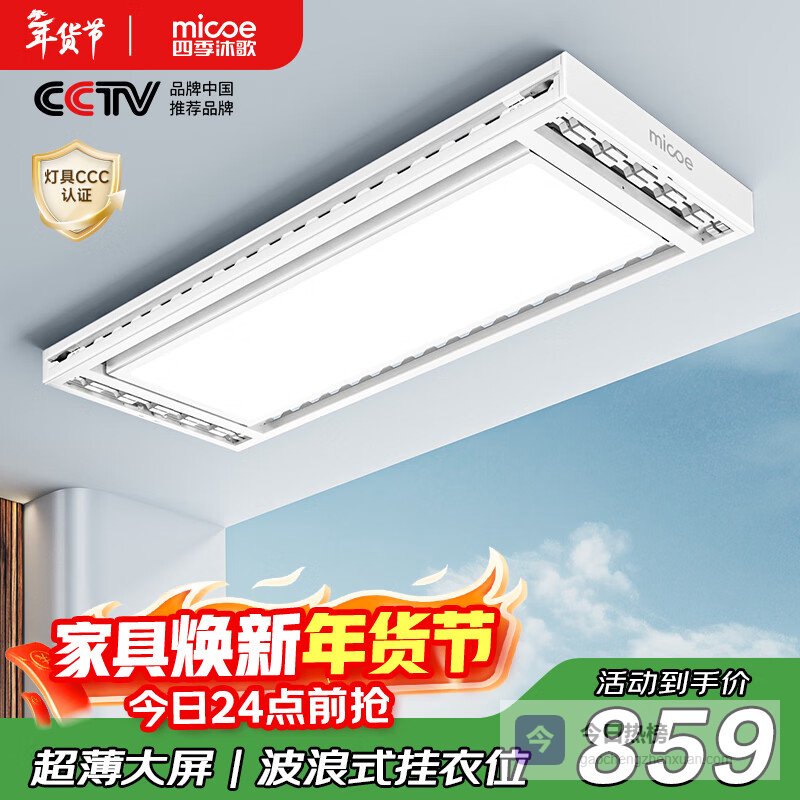 【品牌直营】四季沐歌电动晾衣架自动升降阳台照明晒衣隐藏式智能晾衣晾衣杆【热销】高性价小白机1201¥
