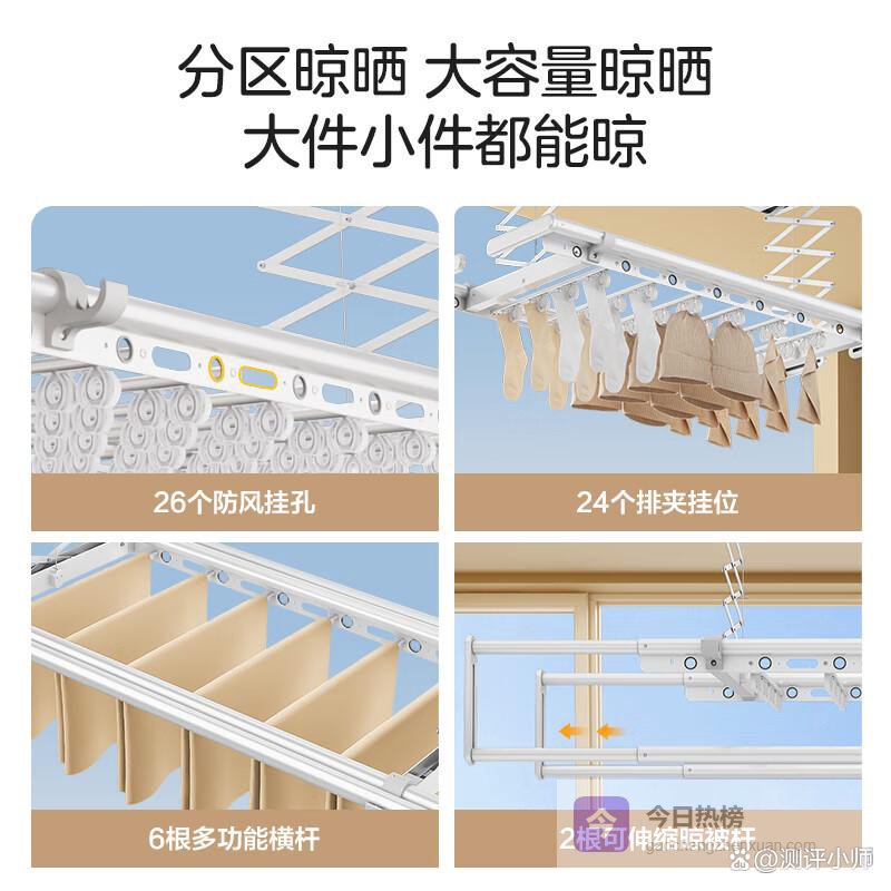 多个挂孔和晾杆的配置,使得分区晾晒更加高效,同时确保了安全性。此外,独特的安全保护机制,包括遇阻即停功能以及多重保护措施,如过压、过载与过热保护,更是让使用者在使用过程中倍感放心。最后,贴心的记忆功能可以在每次操作中自动停止在设定高度,提升了使用的便利性,真是一款家庭必备的好帮手。
