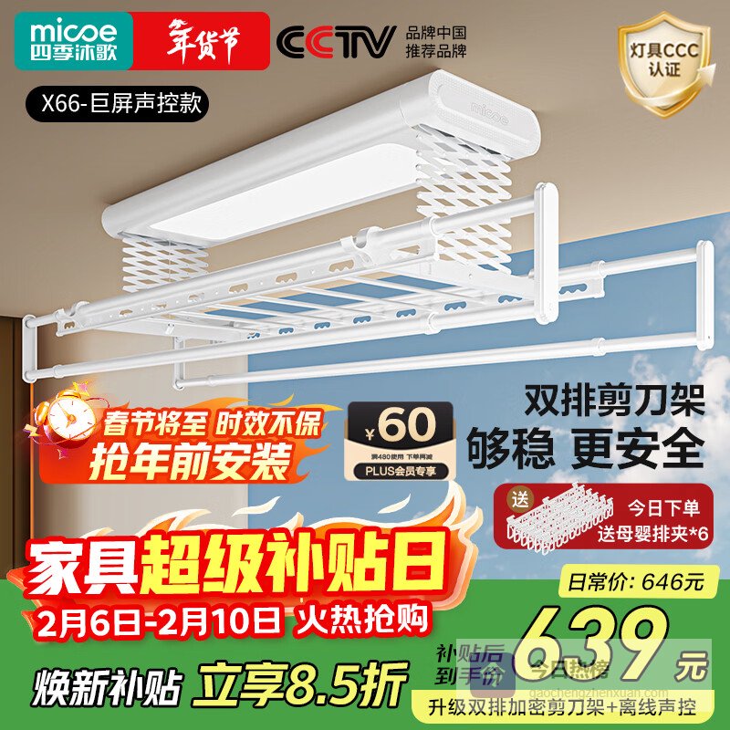 第三款:四季沐歌电动晾衣架X66巨屏照明