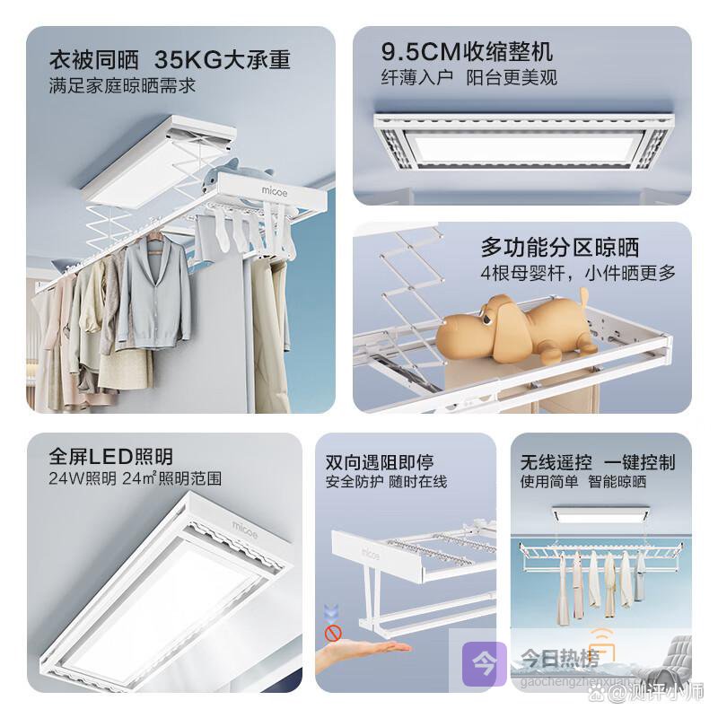 避坑技巧,选择电动晾衣架更智慧。注意产品的最大下降高度。电动晾衣架的最大下降高度直接影响到使用的便利性和适用场景。如果你家居住空间较高,可以选择最大下降高度超过1200mm的型号,以保证晾晒衣物时的灵活性。而对于低层住宅,则无需过于追求高度,适合选择较低高度的款式,避免不必要的浪费。