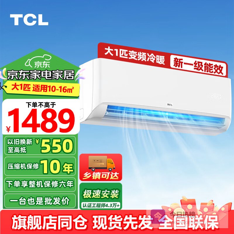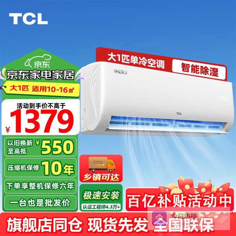 TCL家用空调单冷/变频挂机 大1匹大1.5匹大2匹p大3匹可选 家用卧室壁挂式空调 租房 JD以旧换新 大1匹 一级能效变频一级冷暖节能省电¥