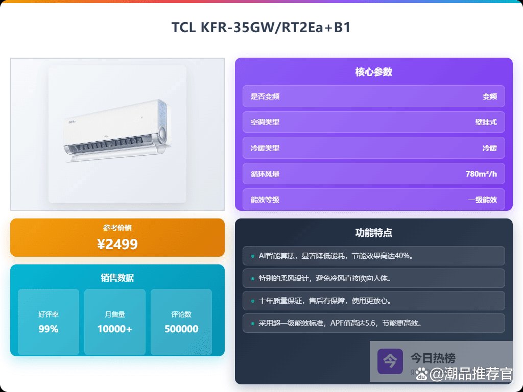 TCL1.5匹空调哪款性价比高,笔者良心推荐这几款1、TCL大1匹变频空调