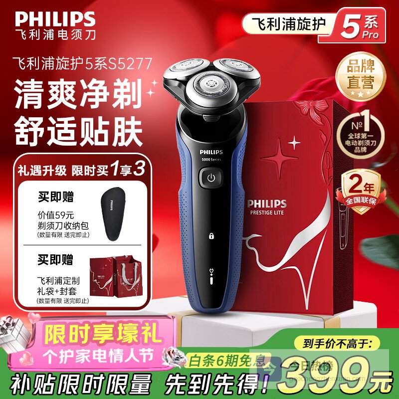 飞利浦(PHILIPS)剃须刀电动飞利浦经典5系Pro清爽净剃AI智能刮胡刀飞利浦电动剃须刀胡须刀送男友情人节年货礼物 【热卖推荐】 S5277/02¥