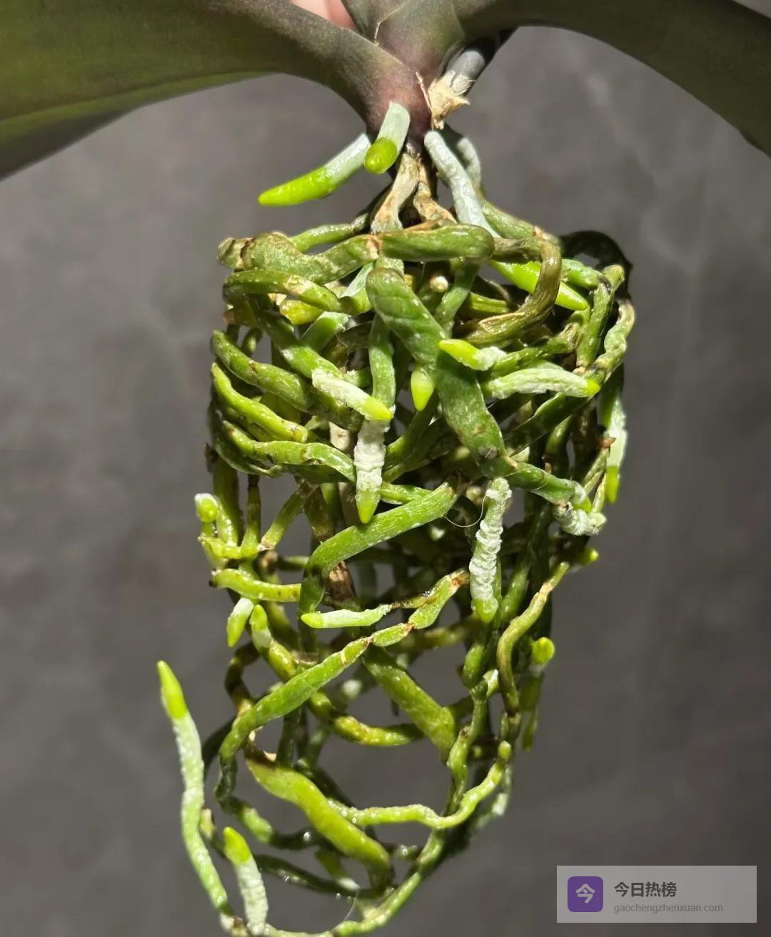 正常养护的蝴蝶兰,长高后会从叶节处自然长出少量气生根,属于生长常态。