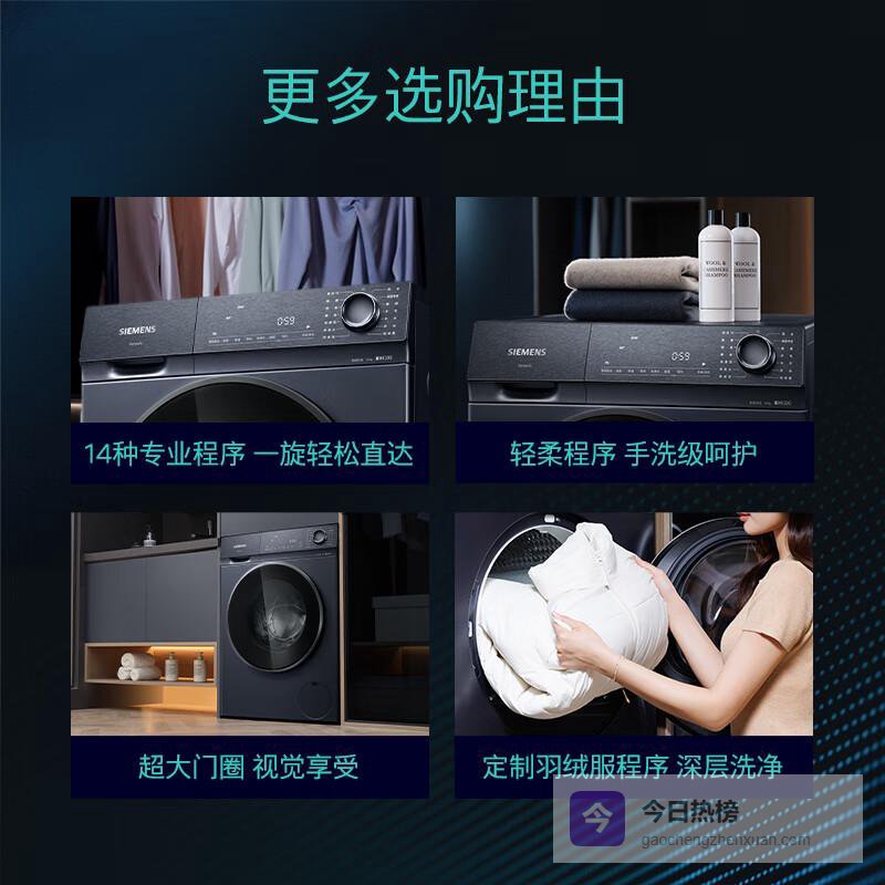 3、西门子。西门子洗衣机以其卓越的科技和创新设计深受消费者信赖。该品牌强调智能洗衣解决方案,通过自动感应技术,根据衣物重量和污垢程度自动调节洗涤程序,确保最佳清洗效果。西门子还拥有省时、省水的优势,提升工作效率,非常适合现代快节奏生活的用户。