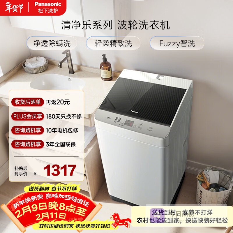 【京东自营】松下抗菌除螨波轮洗衣机10KG大容量一级能效全自动家用XQB100-8QF1¥