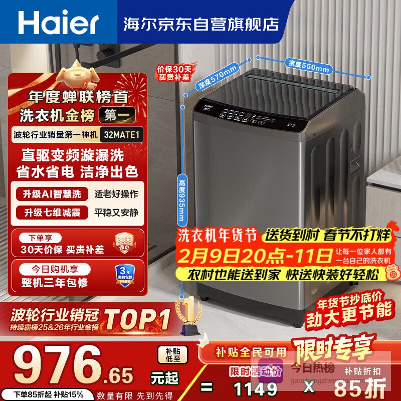 哪个洗衣机品牌的质量最好?款式推荐!第一款:海尔波轮全自动洗衣机10公斤EB100B32Mate1