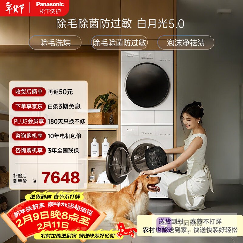 【京东自营】松下白月光5.0洗烘套装10KG滚筒洗衣机全自动+10KG烘干机专业除毛养宠家庭优选81¥