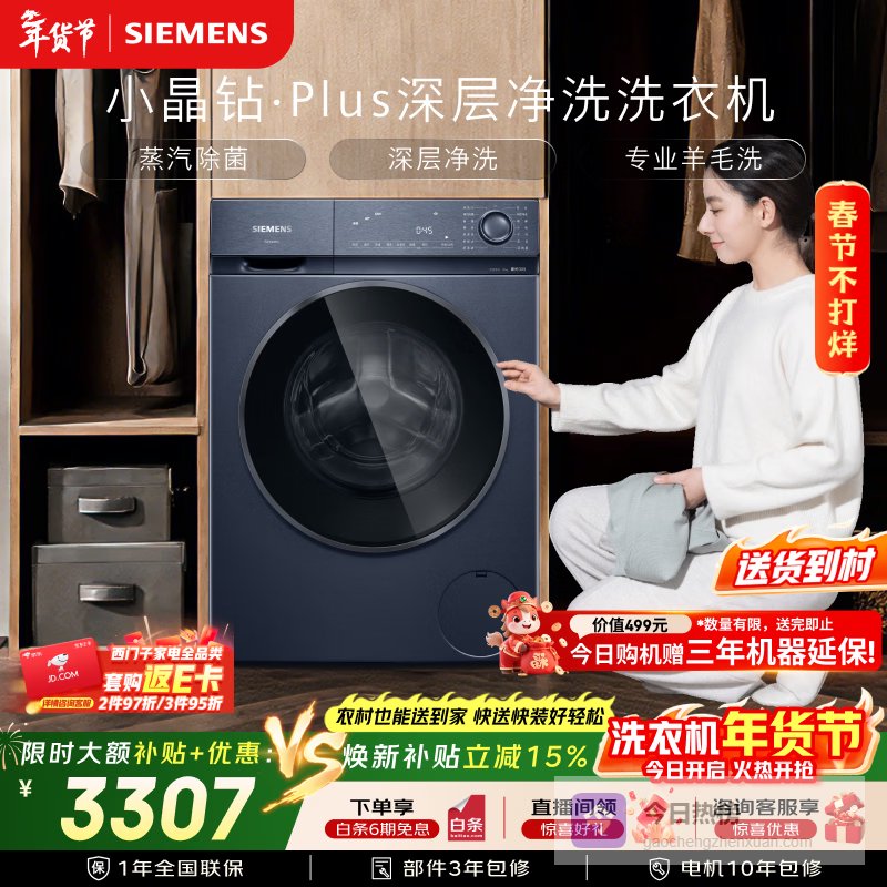 【京东自营】西门子小晶钻plus10KG大容量全自动滚筒洗衣机深层净洗蒸汽除菌羊毛洗隐形触控WG52¥