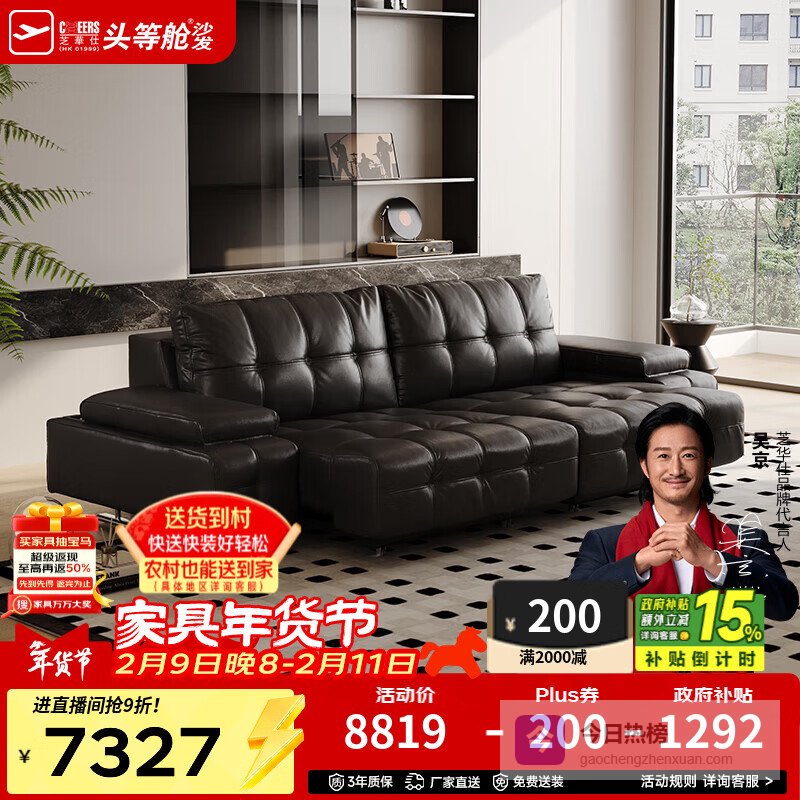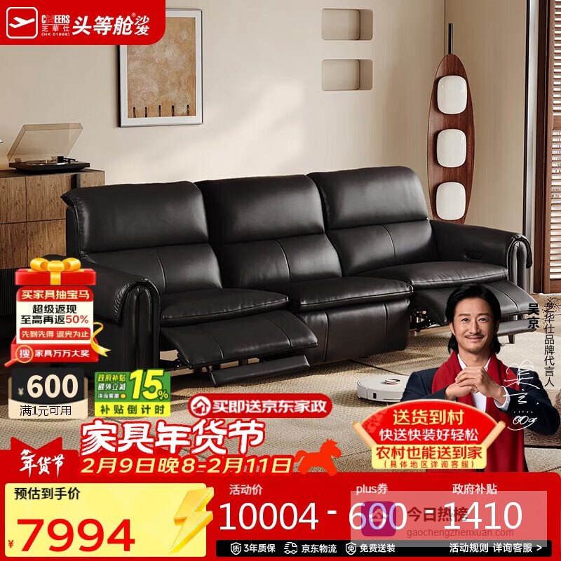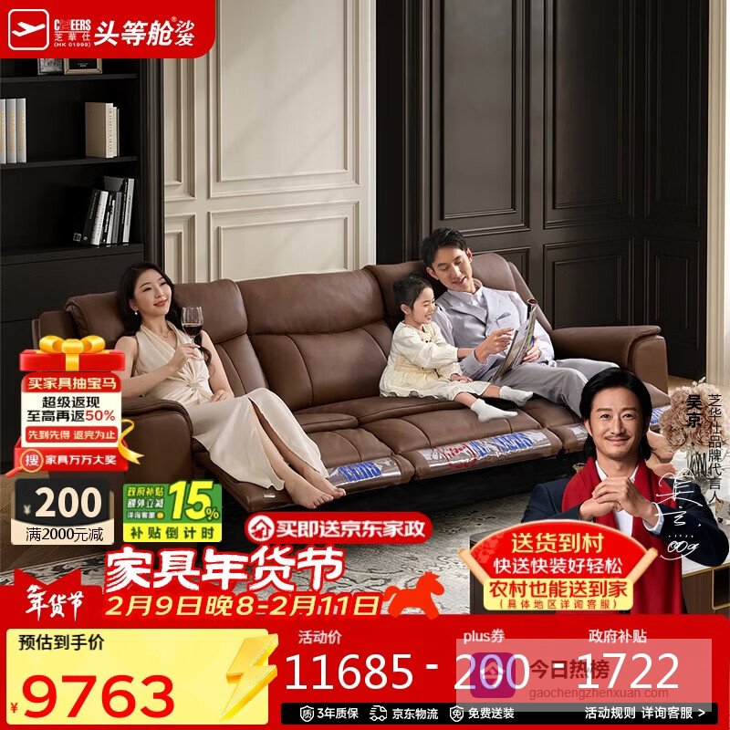 【京东自营】芝华仕头等舱真皮电动沙发客厅2025新款半青皮零重力拿铁30789黑2.67m¥