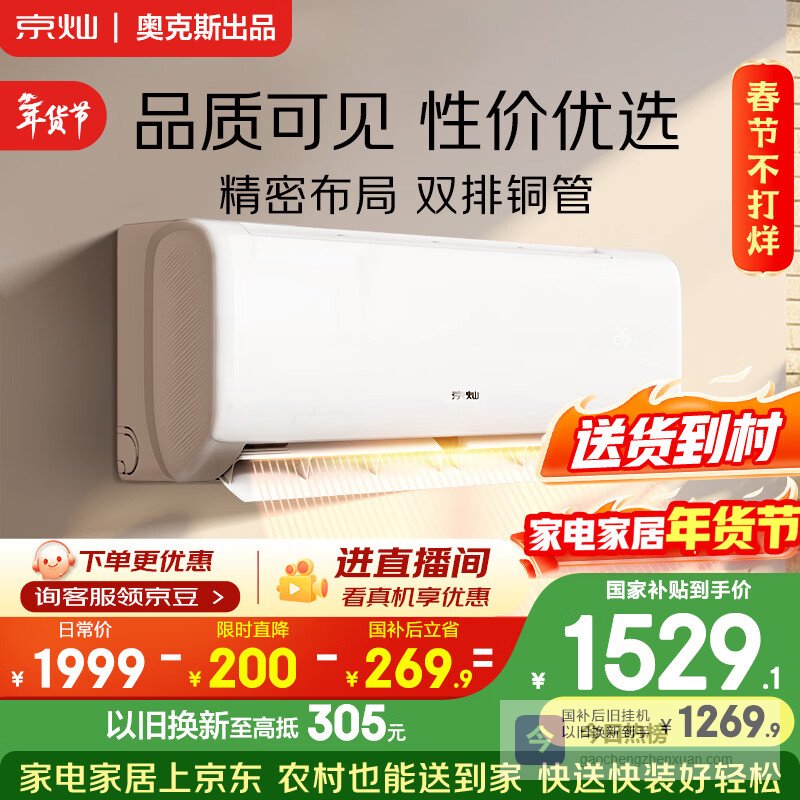 七、京灿【节能省电】这款空调采用一级能效设计,能效比高达5.27,比普通的空调更节能,开起来倒是不用担心电费涨得太快。用它,既能保证凉快又能省不少电费,确实挺划算的选择。