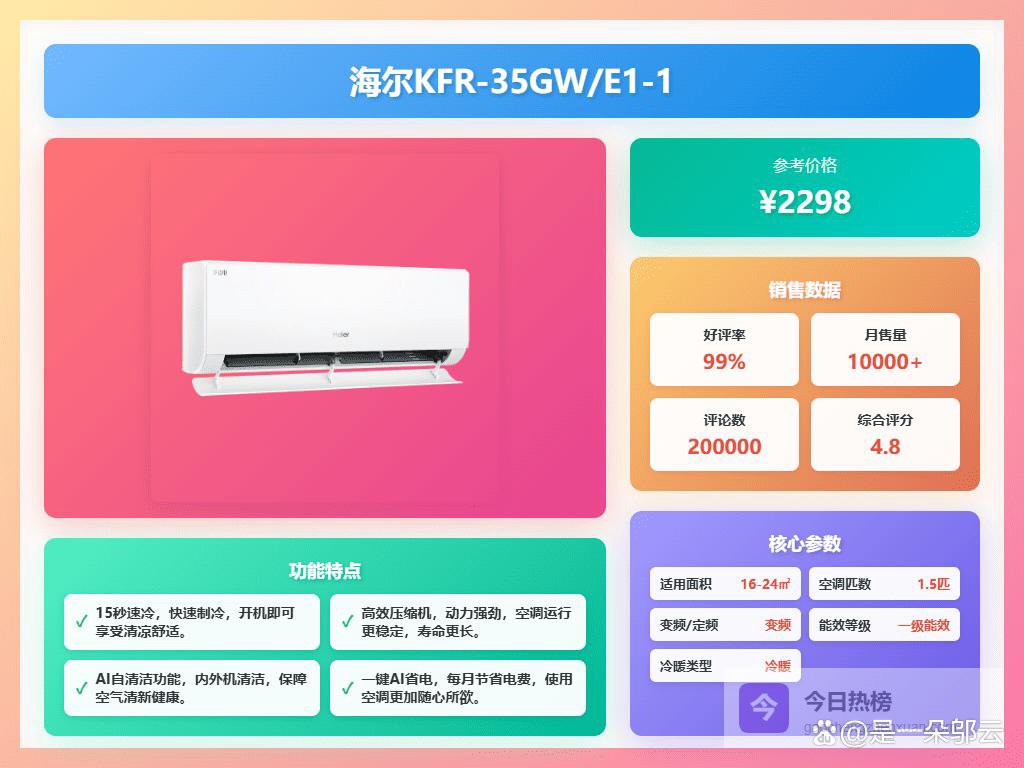 所以啊,想要选到一款称心如意的1.5匹空调,确实得好好做做功课。现在的空调技术也挺成熟了,很多品牌在省电、舒适度、耐用性上都做得不错,关键还是看哪款更符合你的使用习惯和偏好。毕竟好用才是真的,对吧?接下来我整理9款口碑不错的,大家可以看看。