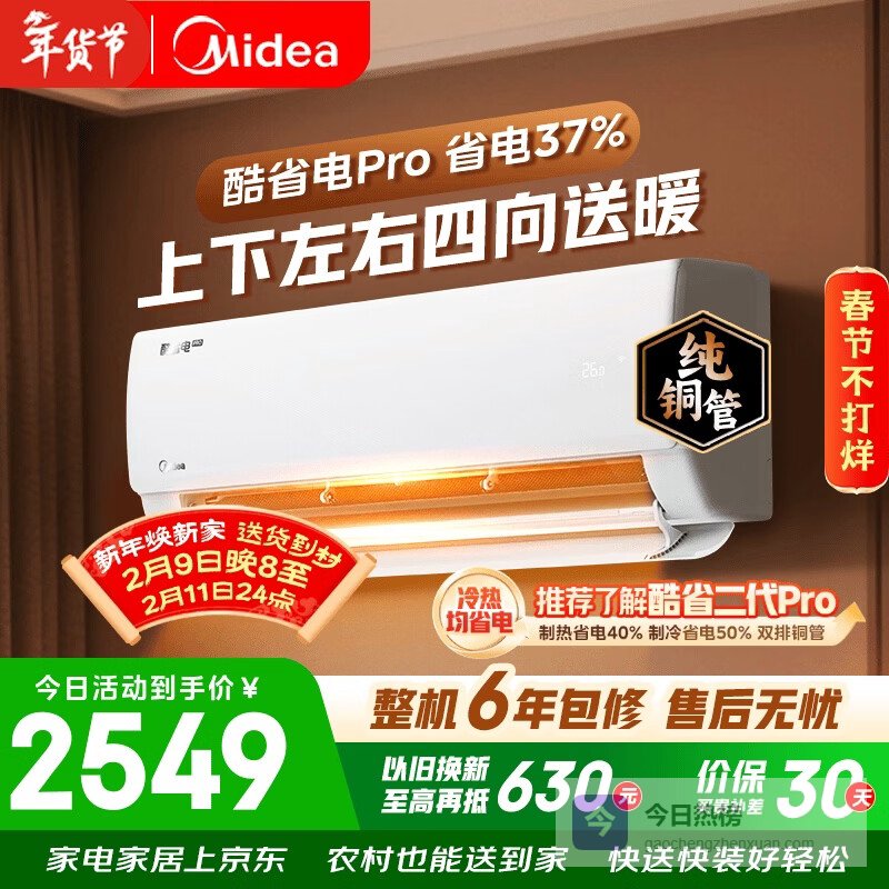 美的空调 酷省电pro 大1.5匹 新一级能效 变频冷暖 纯铜管 壁挂式空调挂机国家补贴KFR-35GW/N8KS1-1P¥