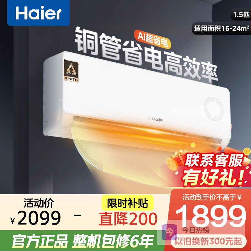 海尔(Haier)智家出品 统帅空调 AI超省电 空调挂机大1匹/1,5匹快速冷暖大风量新一级能效节能家用自清洁防直吹 超省电 一级能效 1.5匹 品牌销冠爆款¥