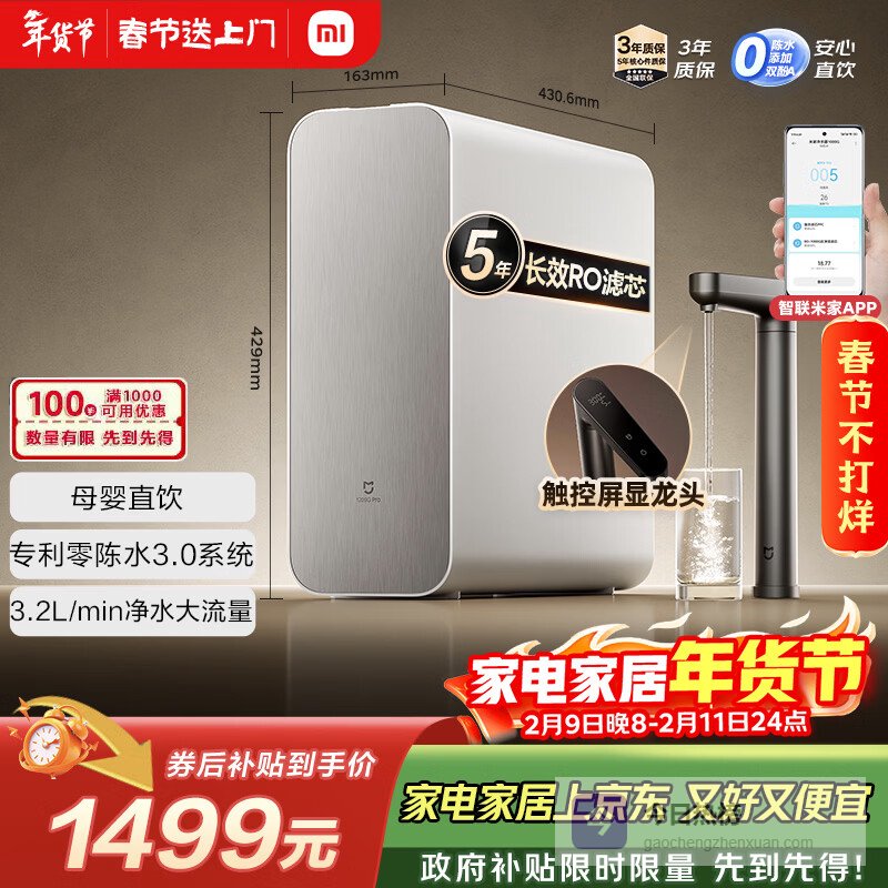 米家小米厨下净水器1200Gpro 5年长效RO 零陈水3.0母婴级家用大通量厨房专用台下用净水机MR1282-B¥