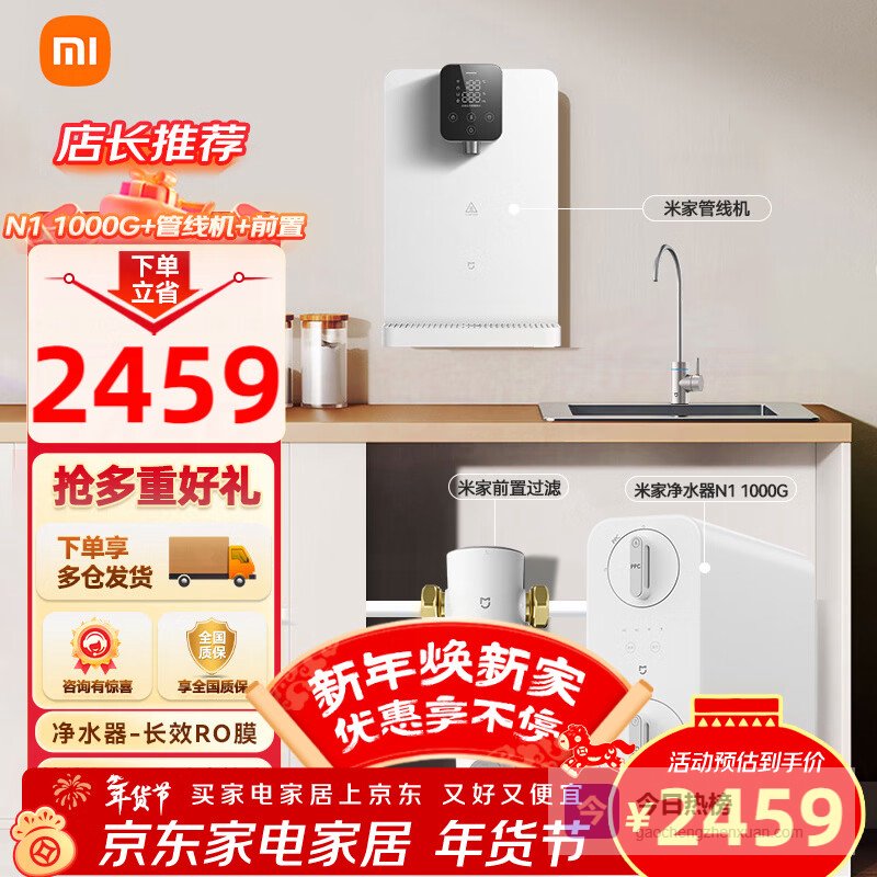 米家小米家用净水器厨下式RO反渗透+秒级速热管线机+前置过滤器套装 【套装】N1 1000G+管线机+前置¥