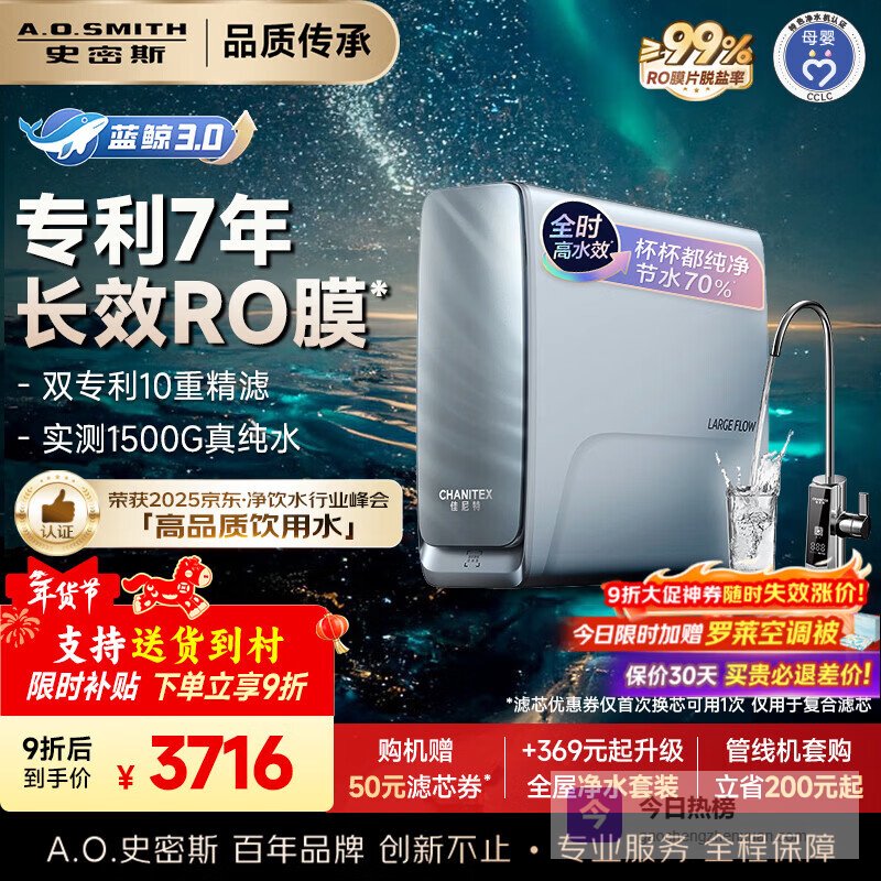 2、史密斯CR3000AE1这款净水器配备10重精滤系统,能有效去除水中的杂质,让饮用水更加纯净。采用RO反渗透膜,高效过滤掉重金属和细菌,确保出水不含有害物质,还能阻挡微生物残留与不安全的矿物质水,保护家庭健康。